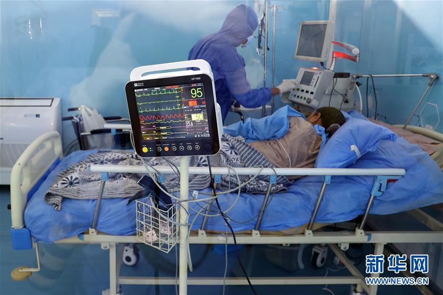 7月14日,工作人员在埃及首都开罗一家医院内照顾病人。 根据埃及14日公布的新冠疫情数据,埃及新增确诊病例929例,累计确诊83930例。 新华社发(艾哈迈德·戈马摄)