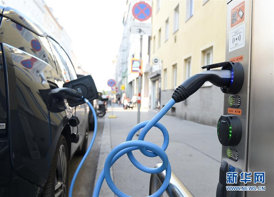 7月14日,一辆纯电动汽车在奥地利维也纳街头用公共充电桩充电。 据奥地利联邦电动汽车协会近日公告,奥地利今年上半年共新注册了4805辆纯电动汽车,占该国上半年新乘用车总注册量的4.3%。从7月1日起,该国对于购买电动车的补贴从每辆3000欧元提升至5000欧元,以鼓励居民购买电动汽车。 新华社记者 郭晨 摄