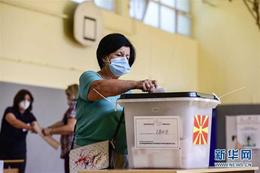 7月15日,选民在北马其顿首都斯科普里一投票站投票。 当日,北马其顿举行议会选举。北马其顿议会选举原定于4月12日提前举行,但受新冠疫情影响被迫推迟。 新华社发(托米斯拉夫·格奥尔基耶夫摄)