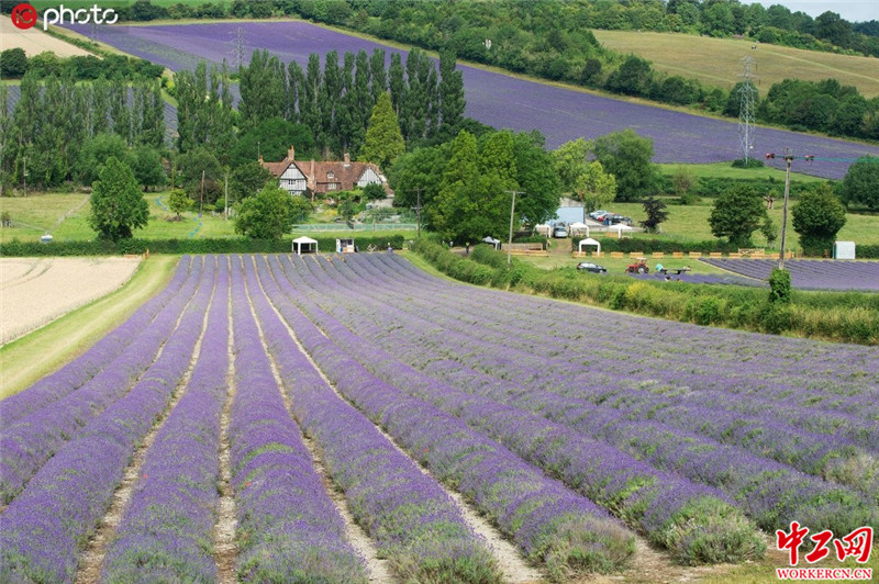 当地时间2020年7月15日,英国肯特郡,薰衣草花海盛开绽放。IC photo