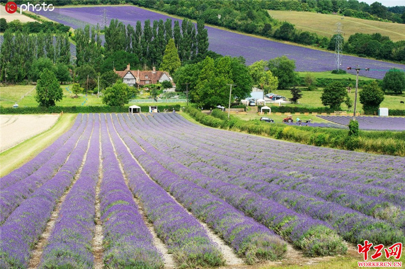 当地时间2020年7月15日,英国肯特郡,薰衣草花海盛开绽放。IC photo
