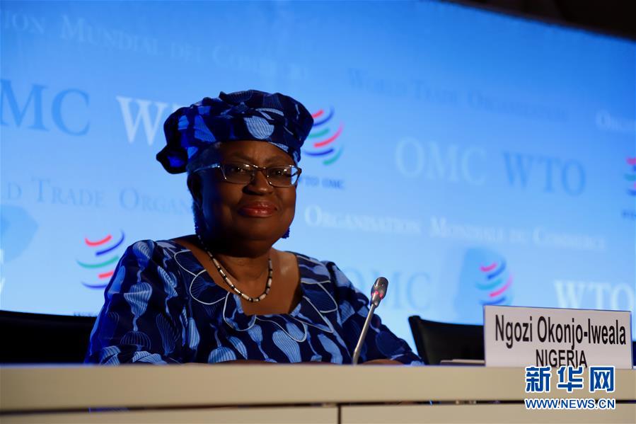 7月15日,尼日利亚候选人恩戈齐·奥孔乔-伊韦阿拉在位于瑞士日内瓦的世界贸易组织总部出席记者会。 新华社发(李叶摄)