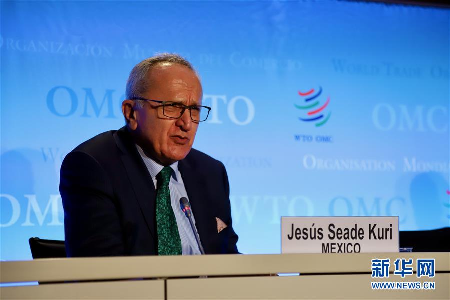 7月15日,墨西哥候选人赫苏斯·塞亚德在位于瑞士日内瓦的世界贸易组织总部出席记者会。 新华社发(李叶摄)