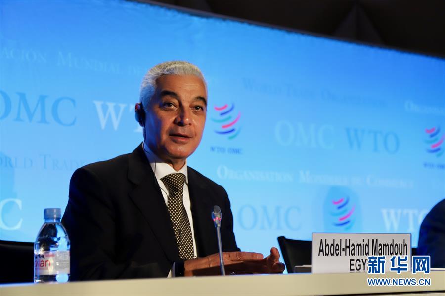 7月15日,埃及候选人哈米德·马姆杜在位于瑞士日内瓦的世界贸易组织总部出席记者会。 新华社发(李叶摄)