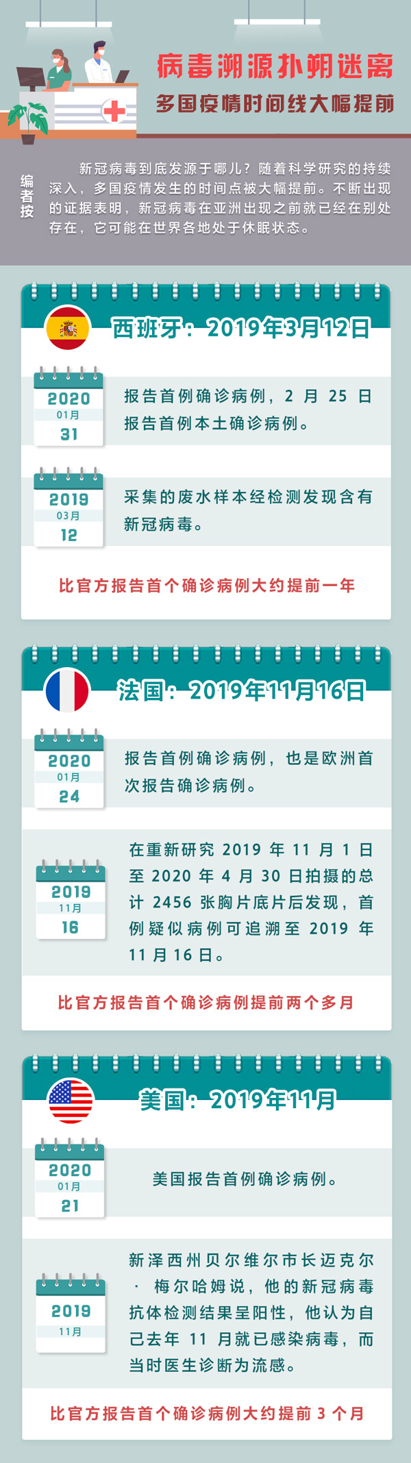 图解:病毒溯源扑朔迷离 多国疫情时间线大幅提前