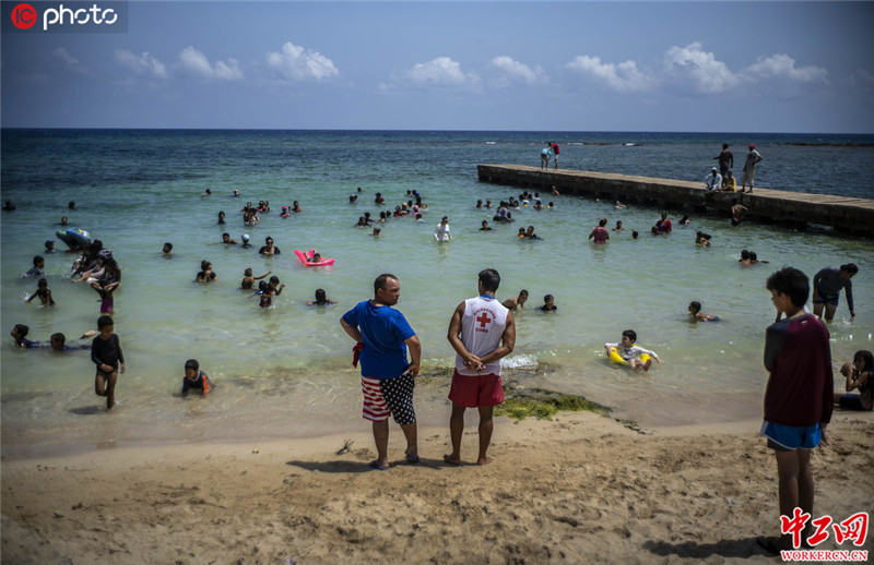 当地时间2020年7月15日,古巴阿尔特米萨,当地高温,民众戏水消暑。IC photo