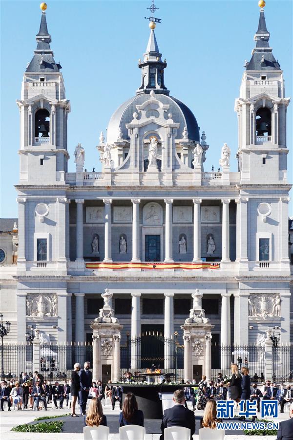 7月16日,西班牙国王费利佩六世(前右二)等王室成员在首都马德里参加国家纪念仪式。 西班牙16日在马德里举行国家纪念仪式,追思和哀悼新冠疫情病亡者。 新华社发