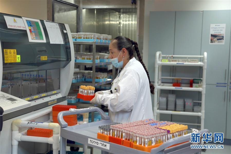 7月16日,在以色列中部城市奥尔耶胡达的一家实验室,工作人员对血液样本进行检测。 以色列卫生部16日晚公布的数据显示,当天新增新冠确诊病例1871例,累计确诊46059例,累计死亡384例,累计治愈20370例。 新华社/基尼图片社