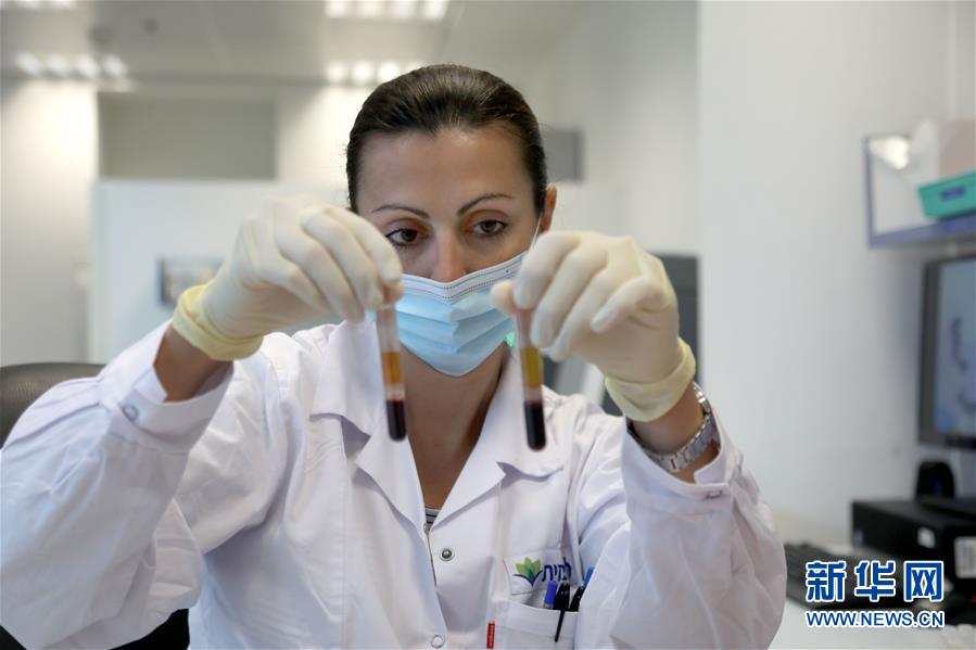 7月16日,在以色列中部城市奥尔耶胡达的一家实验室,工作人员对血液样本进行检测。 以色列卫生部16日晚公布的数据显示,当天新增新冠确诊病例1871例,累计确诊46059例,累计死亡384例,累计治愈20370例。 新华社/基尼图片社