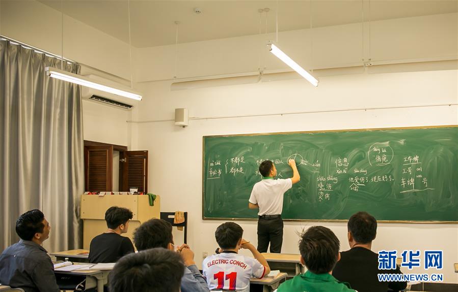 7月15日,在老挝首都万象的老挝国立大学孔子学院,中老铁路老挝籍学员学习汉字。新华社发(凯乔摄)