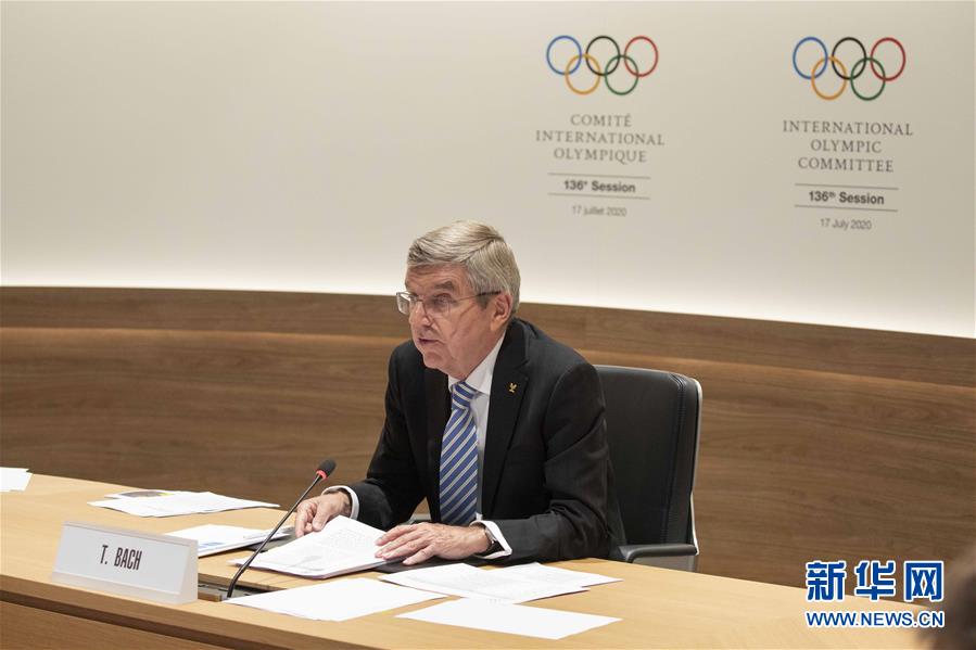 7月17日,国际奥委会主席巴赫在会议上发言。 当日,国际奥委会在瑞士洛桑举行第136次全会。受新冠肺炎疫情影响,本次会议是史上首次线上全会。 新华社发(国际奥委会供图)