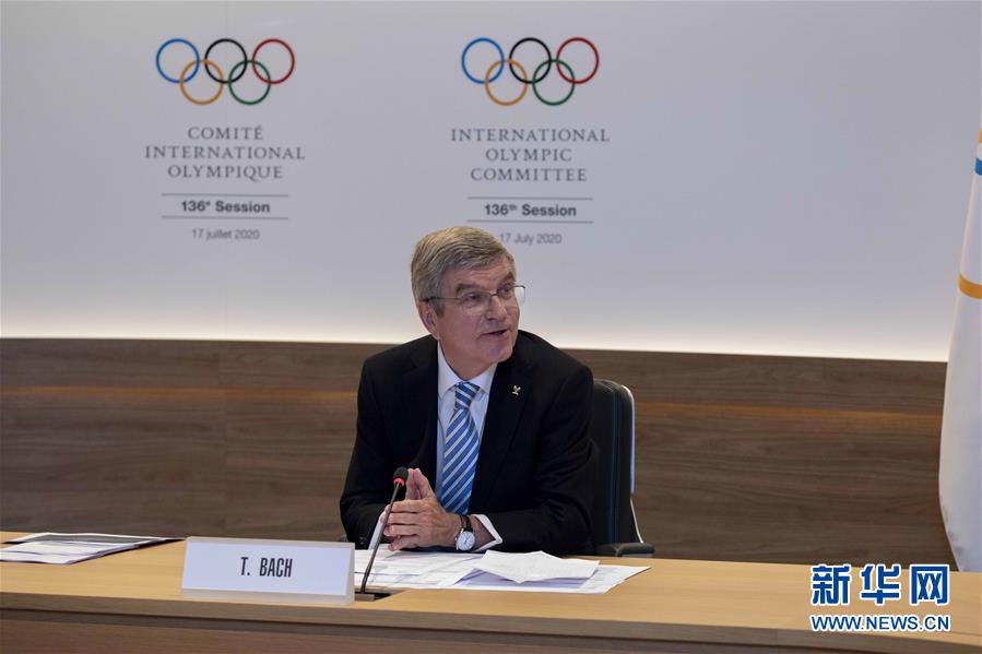 7月17日,国际奥委会主席巴赫在会议上发言。 当日,国际奥委会在瑞士洛桑举行第136次全会。受新冠肺炎疫情影响,本次会议是史上首次线上全会。 新华社发(国际奥委会供图)