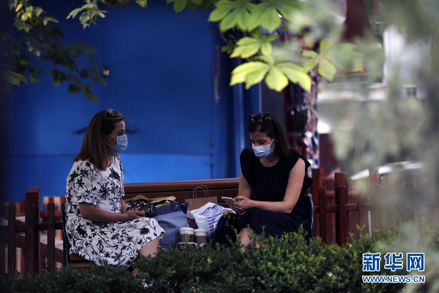 7月17日,在土耳其首都安卡拉,两名女子戴着口罩休息。 土耳其卫生部长科贾17日表示,该国新增新冠确诊病例926例,累计确诊217799例,死亡5458例,治愈199834例。 新华社发(穆斯塔法·卡亚摄)