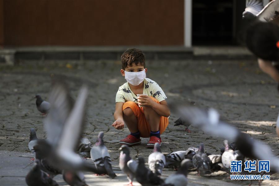 7月17日,一个男孩在土耳其首都安卡拉的公园喂鸽子。 土耳其卫生部长科贾17日表示,该国新增新冠确诊病例926例,累计确诊217799例,死亡5458例,治愈199834例。 新华社发(穆斯塔法·卡亚摄)