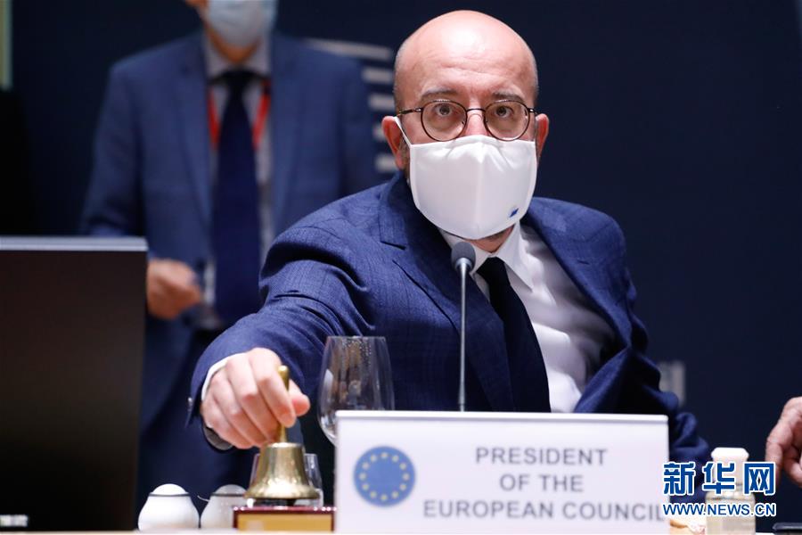 7月20日,在比利时布鲁塞尔的欧盟总部,欧洲理事会主席米歇尔主持欧盟峰会。 新华社发(欧盟供图)