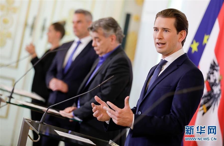 7月21日,奥地利总理库尔茨(右)在维也纳举行的记者会上讲话。新华社发(奥地利总理府供图)