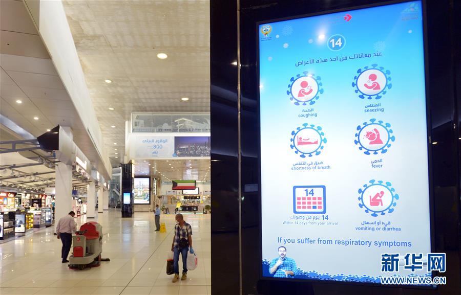 这是7月23日在科威特费尔瓦尼耶省的科威特国际机场出发大厅拍摄的健康提示标识。 科威特将从8月1日起分三个阶段逐步放开国际商业航班,每个阶段持续6个月:第一阶段将恢复30%的运力,第二阶段恢复到60%,直到最后全面运营。另外,任何抵达或离开科威特的人必须持有新冠病毒核酸检测阴性证明。 新华社发(阿萨德 摄)