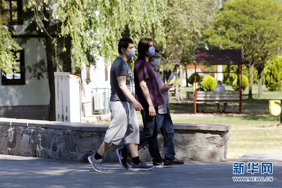 7月23日,人们戴着口罩在土耳其安卡拉的一个公园散步。 土耳其卫生部长科贾23日表示,该国新增新冠确诊病例913例,累计确诊223315例。 新华社发(穆斯塔法·卡亚摄)
