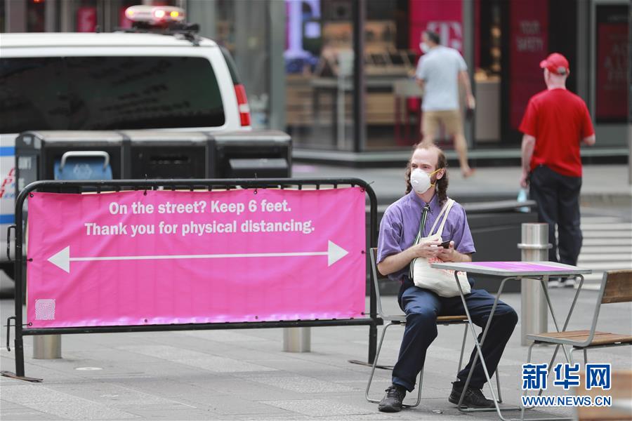 7月23日,一名男子在美国纽约时报广场小憩。