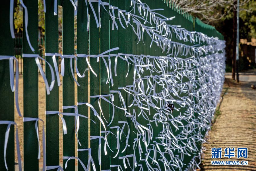 7月25日,人们在南非约翰内斯堡一所教堂外的篱笆围栏上系上白丝带,为新冠肺炎患者祈福。 非洲疾病预防控制中心25日发布的数据显示,非洲累计新冠确诊病例已达810008例,累计死亡17088例,累计治愈462374例。截至24日,南非累计确诊病例421996例。 新华社发 (耶希尔 摄)