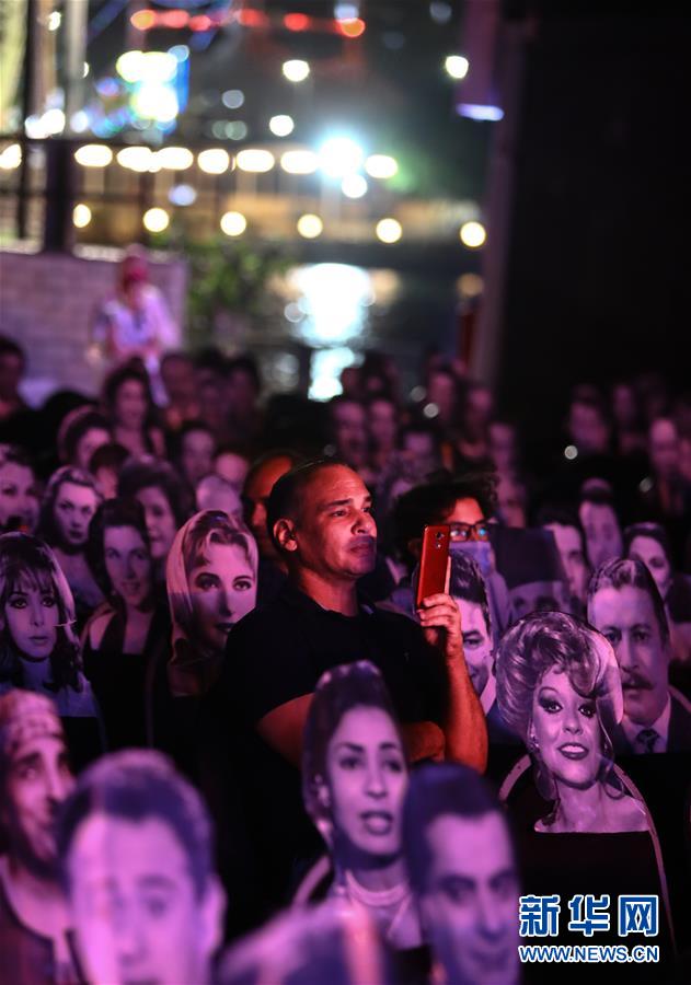 7月25日,在埃及首都开罗的一家剧院,一名男子坐在名人照片之间拍照。 埃及开罗的一家剧院在座椅上摆放了埃及早期歌星和影星的照片,帮助人们在观看演出时保持社交距离。埃及卫生部25日晚说,埃及境内新增新冠确诊病例511例,累计确诊91583例。 新华社发(艾哈迈德·戈马摄)