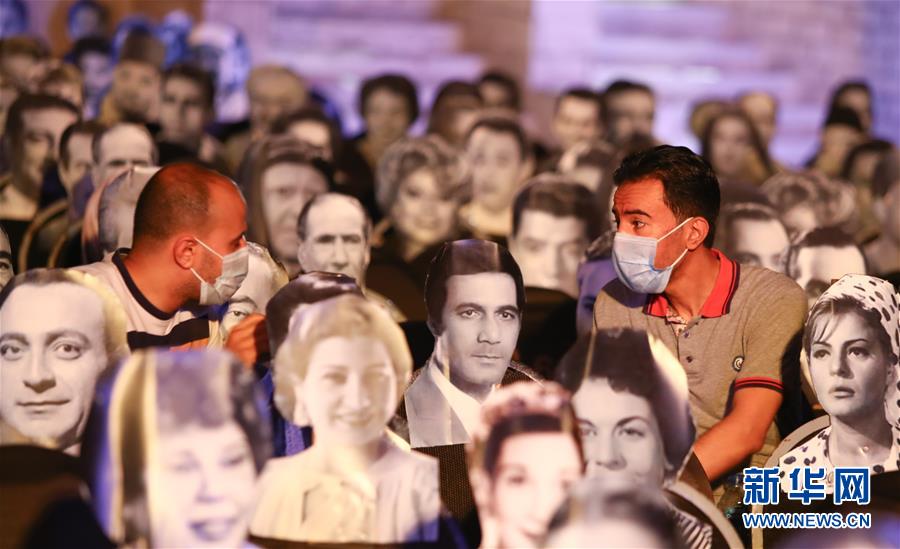 7月25日,在埃及首都开罗的一家剧院,人们坐在名人照片之间交谈。 埃及开罗的一家剧院在座椅上摆放了埃及早期歌星和影星的照片,帮助人们在观看演出时保持社交距离。埃及卫生部25日晚说,埃及境内新增新冠确诊病例511例,累计确诊91583例。 新华社发(艾哈迈德·戈马摄)