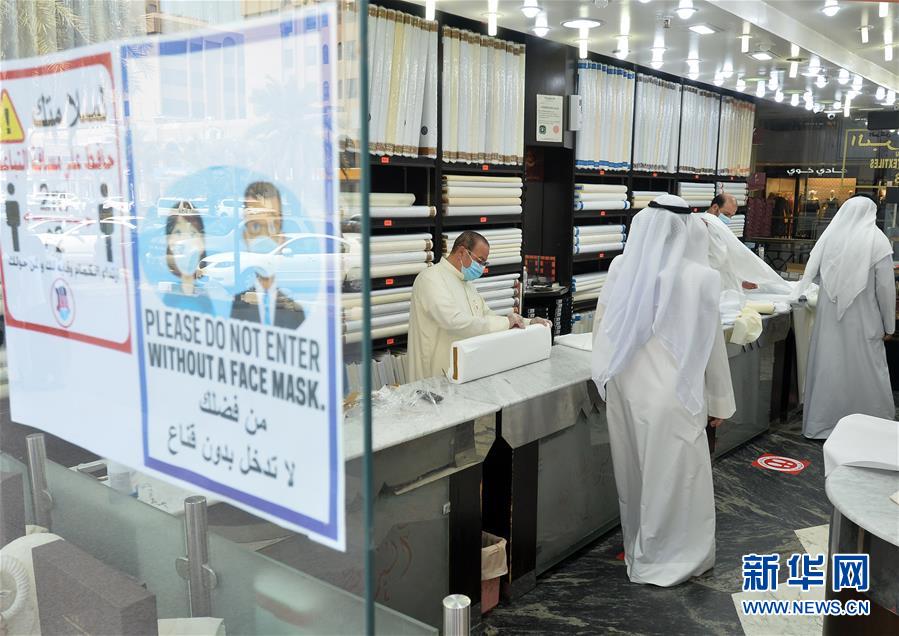 7月26日,在科威特费尔瓦尼耶省的费尔瓦尼耶地区,一处店铺前张贴着健康提示。 新华社发(阿萨德摄)