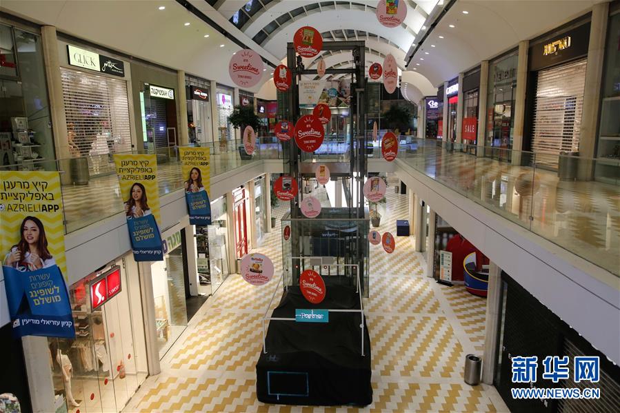 这是7月25日在以色列中部城市莫迪因拍摄的空荡荡的购物中心。新华社发(吉尔·科恩·马根 摄)