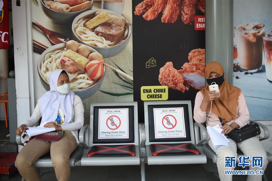 7月27日,两名女子佩戴口罩在印度尼西亚雅加达的一个火车站保持社交距离而坐。 新华社发(祖卡南摄)