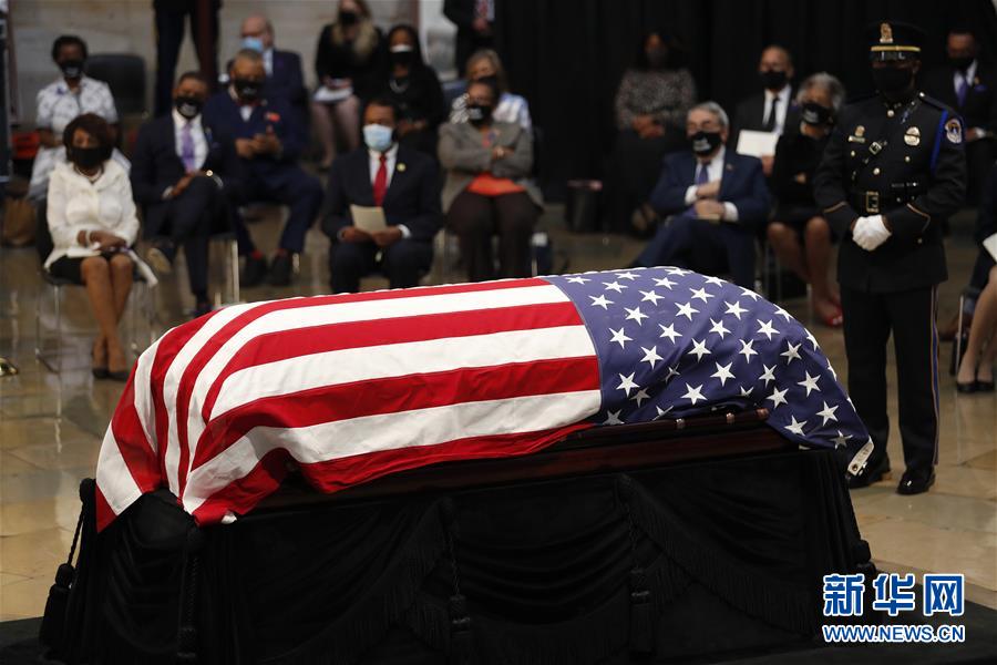 7月27日,已故美国民权运动领导人、民主党国会众议员约翰·刘易斯的灵柩被安放在美国首都华盛顿国会大厦圆顶大厅。 当日,已故美国民权运动领导人刘易斯的遗体运抵首都华盛顿,安放在国会大厦圆顶大厅,接受吊唁。美国民权运动领导人、民主党国会众议员约翰·刘易斯17日深夜病逝,终年80岁。 新华社发(肖恩·休摄)