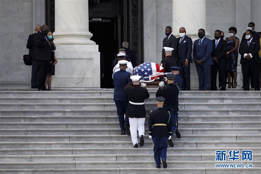 7月27日,已故美国民权运动领导人、民主党国会众议员约翰·刘易斯的灵柩被运抵美国首都华盛顿国会大厦。 当日,已故美国民权运动领导人刘易斯的遗体运抵首都华盛顿,安放在国会大厦圆顶大厅,接受吊唁。美国民权运动领导人、民主党国会众议员约翰·刘易斯17日深夜病逝,终年80岁。 新华社发(沈霆摄)