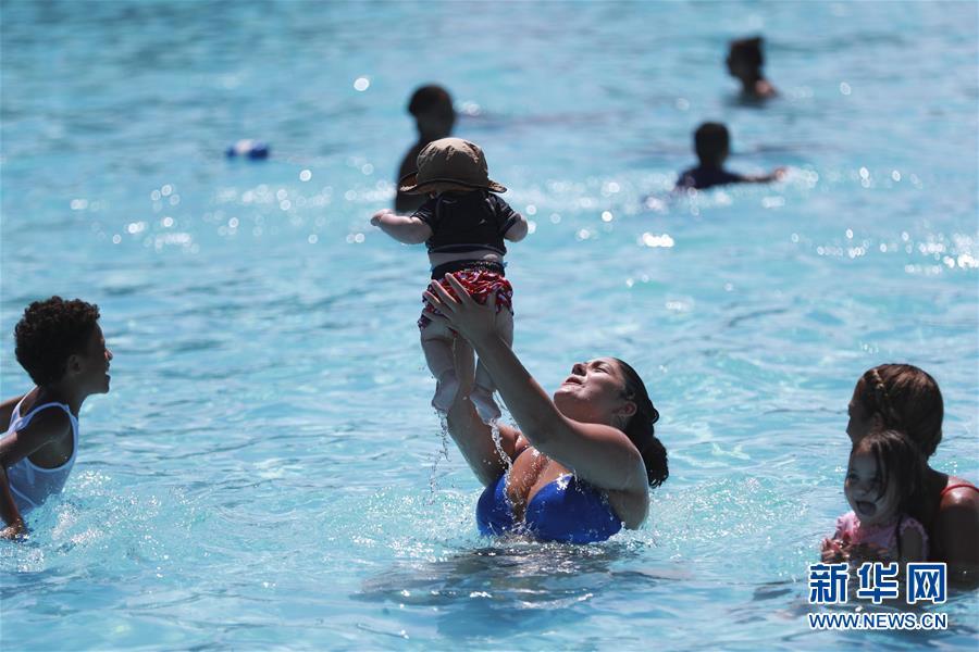 7月27日,人们在美国纽约一处公共泳池戏水。 当天,纽约市最高气温超过36摄氏度,刚刚开放的户外泳池成为人们消暑的好去处。 新华社记者王迎摄
