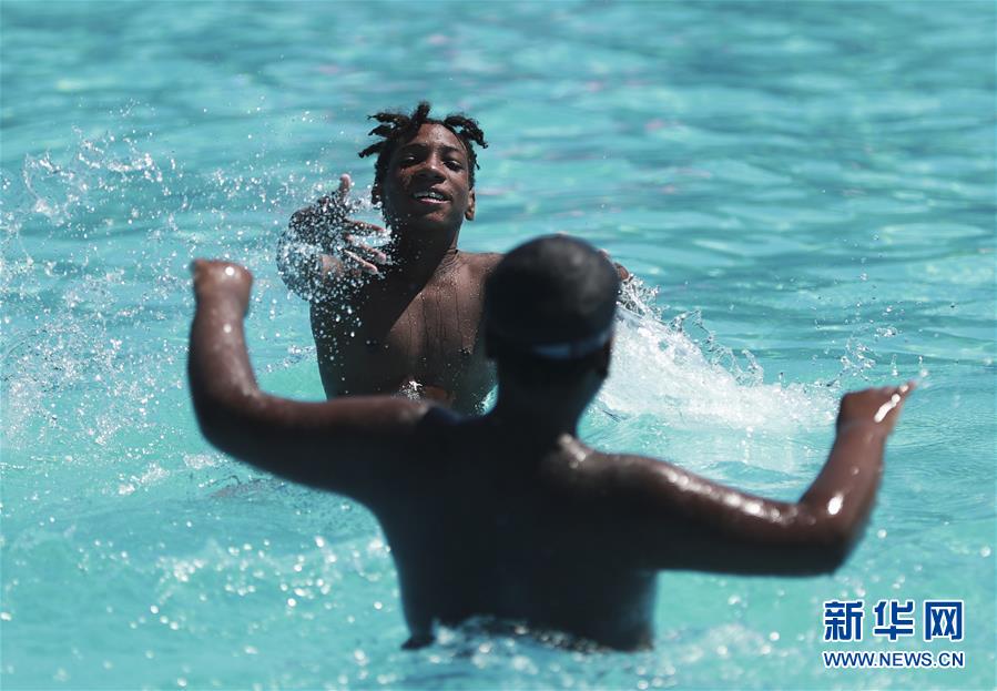 7月27日,人们在美国纽约一处公共泳池戏水。 当天,纽约市最高气温超过36摄氏度,刚刚开放的户外泳池成为人们消暑的好去处。 新华社记者王迎摄