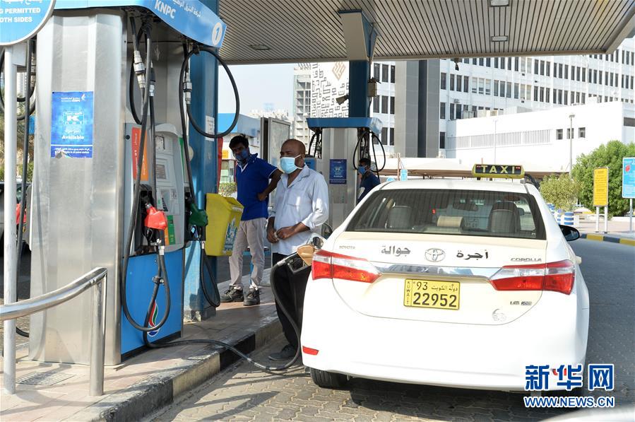 7月28日,在科威特首都科威特城,一名复工的出租车司机给汽车加油。 新华社发(阿萨德摄)