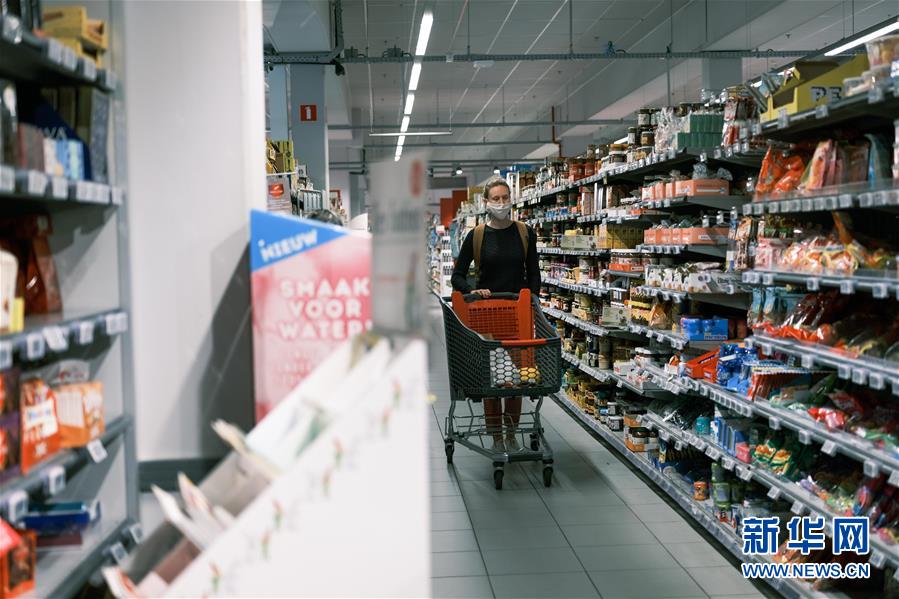 7月29日,一名戴口罩的顾客在比利时布鲁塞尔一家超市采购。 为应对近期有所抬头的疫情,比利时政府决定收紧相关防控措施,包括从7月29日至8月底一个家庭能密切接触的亲友人数将由过去的最多15人减至5人;大型活动的人数限额减半;婚礼、宴会等私人聚会最多不超过10人等。 新华社记者 张铖 摄