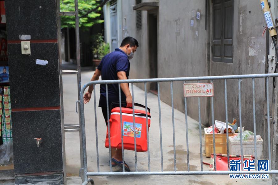 7月29日,在越南首都河内,一名新冠确诊患者居住的街道被封锁以便消毒。 新华社/越通社