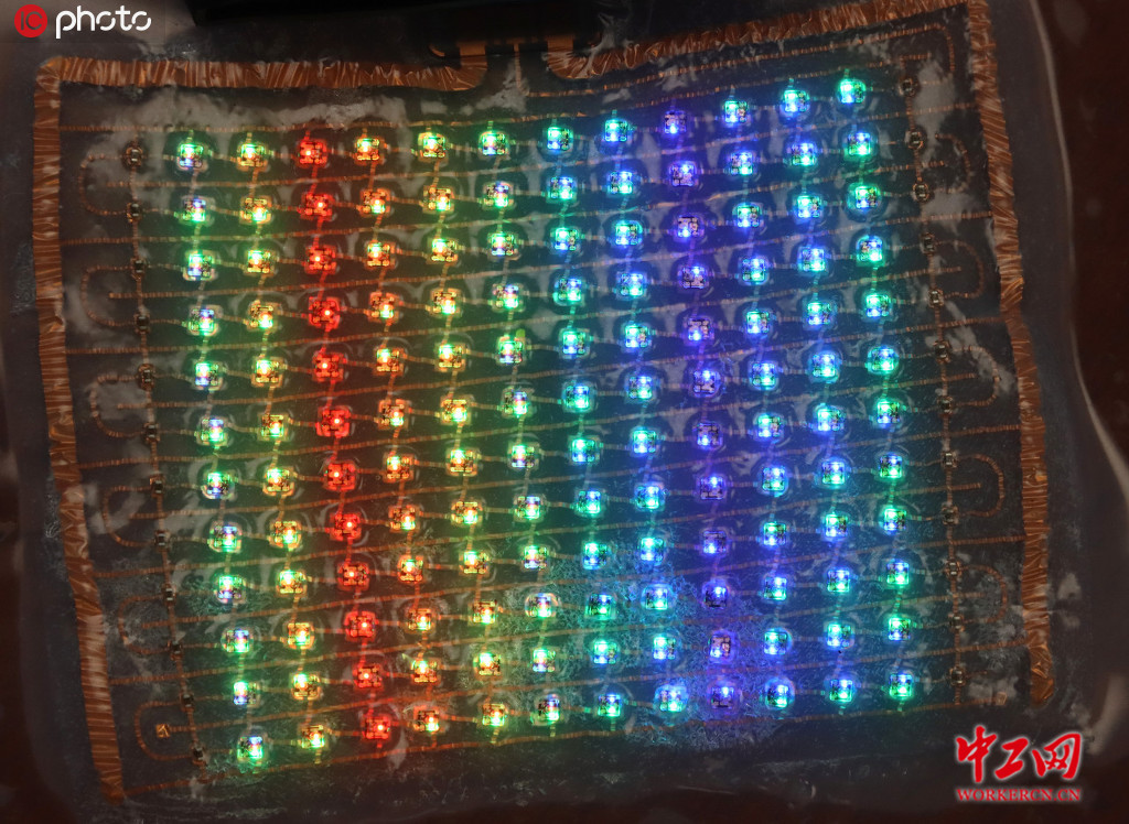当地时间2020年7月28日,日本东京,日本知名印刷公司大日本印刷株式会社的研究人员Hiroki Maeda展示可贴在皮肤上的显示屏。据悉,这款显示屏的形状为正方形,其厚度仅有2毫毫米,屏幕下配备LED芯片,屏幕整体可以实现伸缩,如同胶片一样。据悉,这款显示器可以用于接收智能手机等移动设备传来的图像数据,并显示内容,让用户可以在不借助手机的情况下阅读信息及掌握自身健康状况等。这款可以贴在皮肤上的彩色显示屏由大日本印刷株式会社和东京大学教授Takao Someya合作研发。