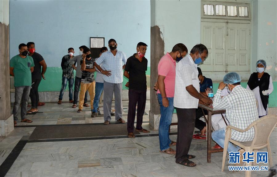 7月29日,人们在印度高哈蒂排队等待接受新冠病毒检测采样。 印度卫生部29日公布的数据显示,过去24小时印度新增新冠确诊病例48513例,累计确诊1531669例。 新华社发