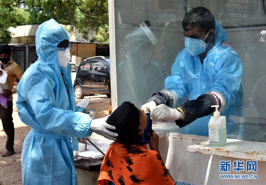7月29日,医务人员在印度海得拉巴为当地居民进行新冠病毒检测采样。 印度卫生部29日公布的数据显示,过去24小时印度新增新冠确诊病例48513例,累计确诊1531669例。 新华社发