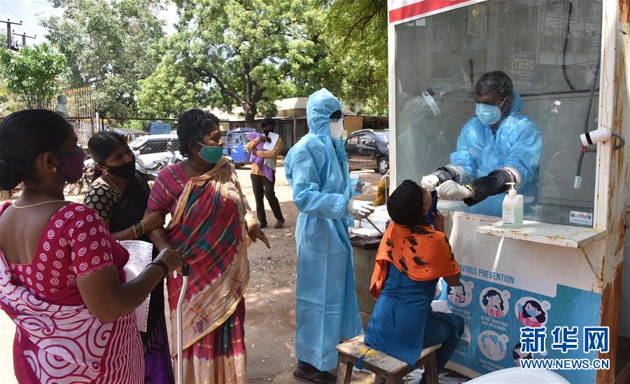 7月29日,医务人员在印度海得拉巴为当地居民进行新冠病毒检测采样。 印度卫生部29日公布的数据显示,过去24小时印度新增新冠确诊病例48513例,累计确诊1531669例。 新华社发