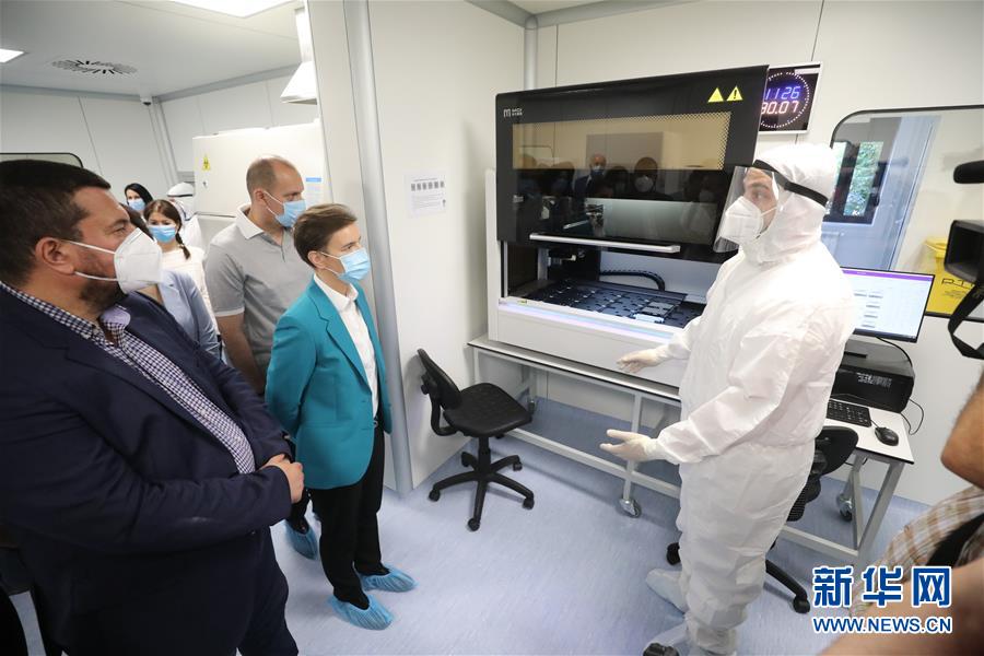7月30日,在塞尔维亚南部城市尼什,塞尔维亚总理布尔纳比奇(右二)视察新落成的“火眼”病毒检测实验室。 塞尔维亚第二座由中国企业参与设计并捐赠设备的“火眼”病毒检测实验室落成仪式30日在尼什举行。 新华社发(塞尔维亚政府供图)