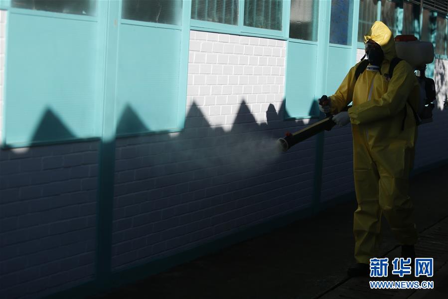 7月30日,工人在巴西首都巴西利亚为公立学校的教室消毒。当地公立学校处于停课状态,复课时间尚待确定。 目前,巴西的累计确诊和死亡病例数均位列全球第二,仅次于美国。 新华社发(卢西奥·塔沃拉摄)