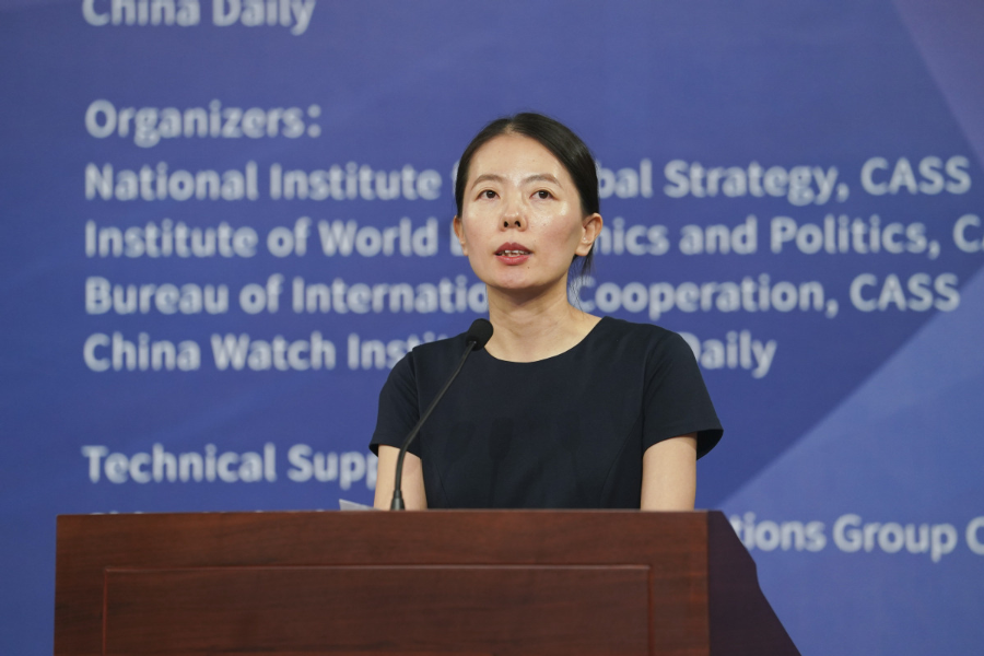 7月29日晚,中国社会科学院世界经济与政治研究所全球治理研究室主任、副研究员任琳在论坛上发布《抗击新冠肺炎(COVID-19)疫情 与改善全球卫生治理》报告。 中国日报记者 冯永斌 摄