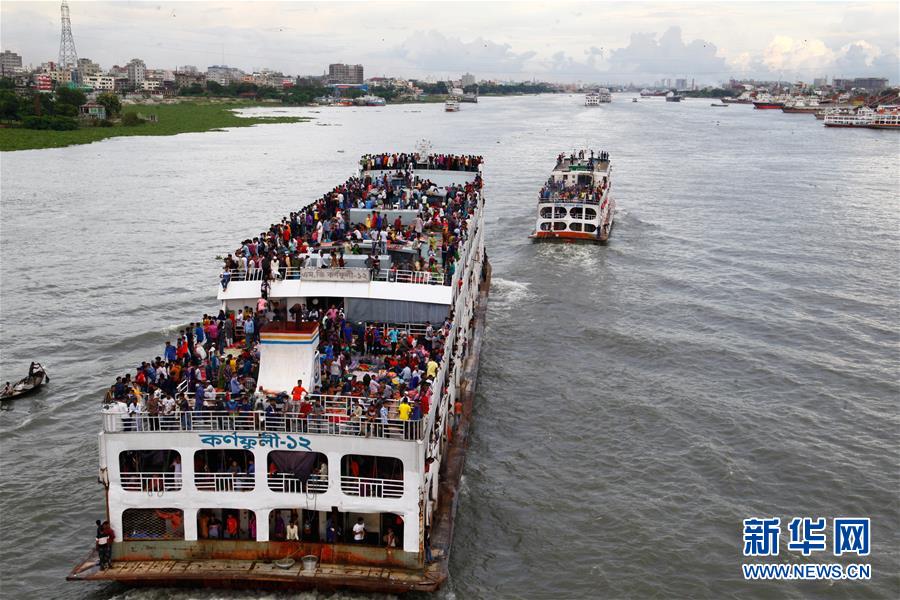 7月30日,在孟加拉国首都达卡,当地民众乘船开启自己的返乡之旅。 宰牲节即将到来,孟加拉国首都达卡的大批民众陆续返乡过节。 新华社发