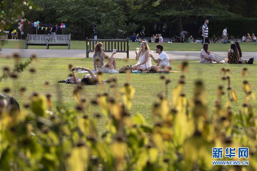 7月31日,人们在英国伦敦摄政公园里休闲。新华社记者 韩岩 摄