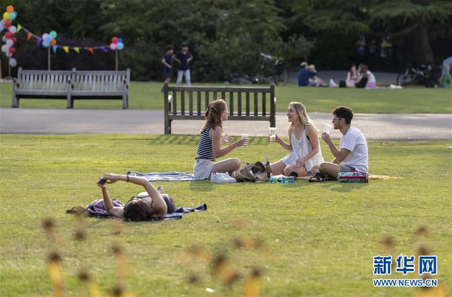 7月31日,人们在英国伦敦摄政公园里休闲。新华社记者 韩岩 摄