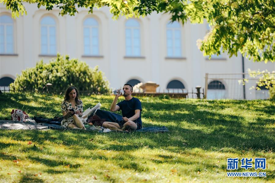 7月31日,在比利时布鲁塞尔,人们在利奥波德公园乘凉休息。 当日,比利时迎来高温天气,最高气温超过36摄氏度。 新华社记者 张铖 摄