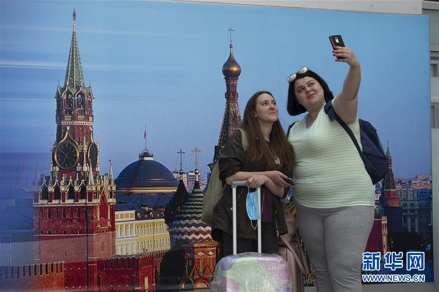 8月1日,在俄罗斯首都莫斯科的谢列梅捷沃机场,乘客在拍照。新华社发(亚历山大摄)
