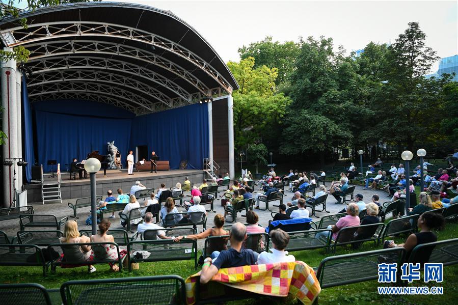 8月1日,在德国法兰克福棕榈园,人们观看一场户外音乐会。 新华社记者 逯阳 摄