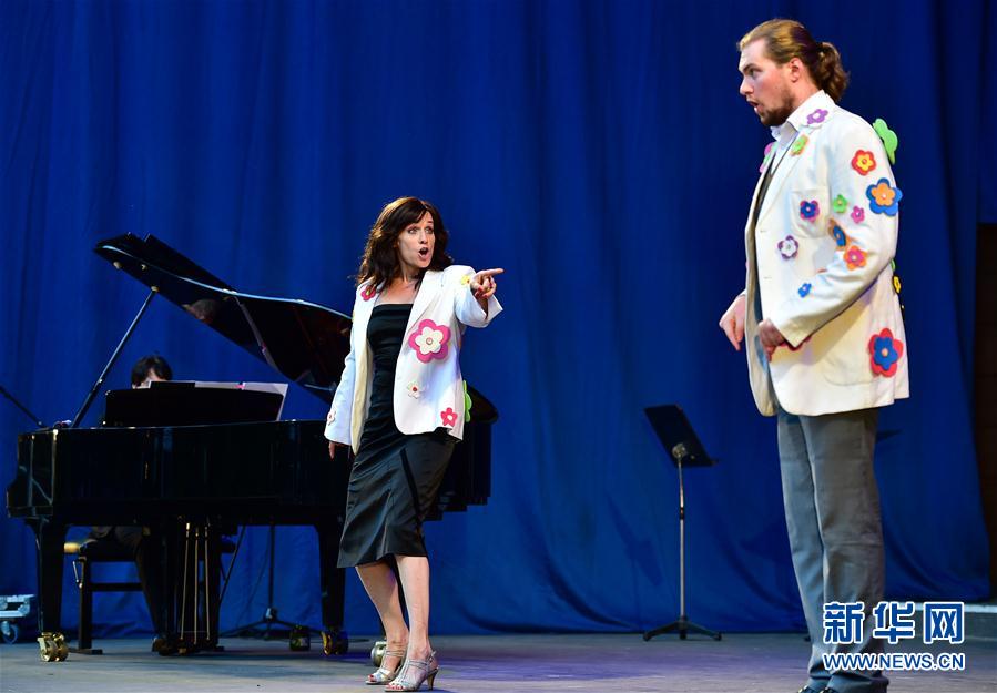 8月1日,演员在德国法兰克福棕榈园一场户外音乐会上表演。 新华社记者 逯阳 摄